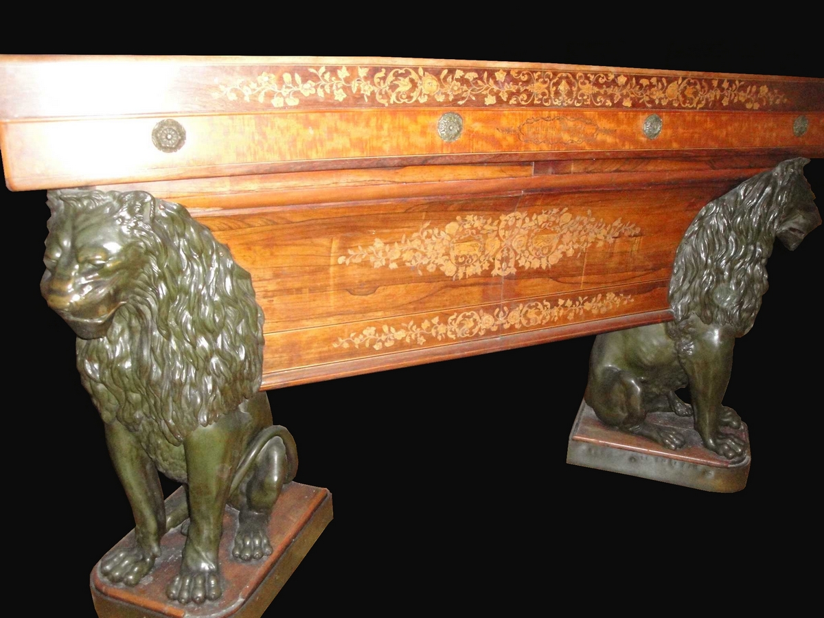 Et 2 matières différentes : parties noires en fonte, parties dorées en bronze.