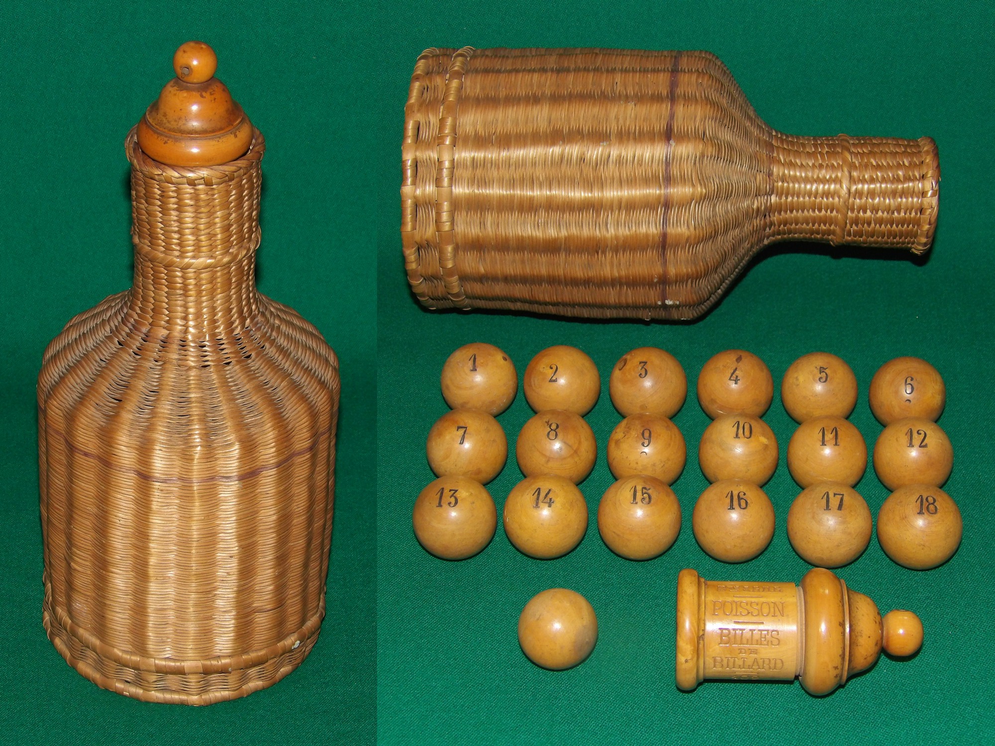 Bouteilles en osier, trouvées en Italie, jeu de la poule.