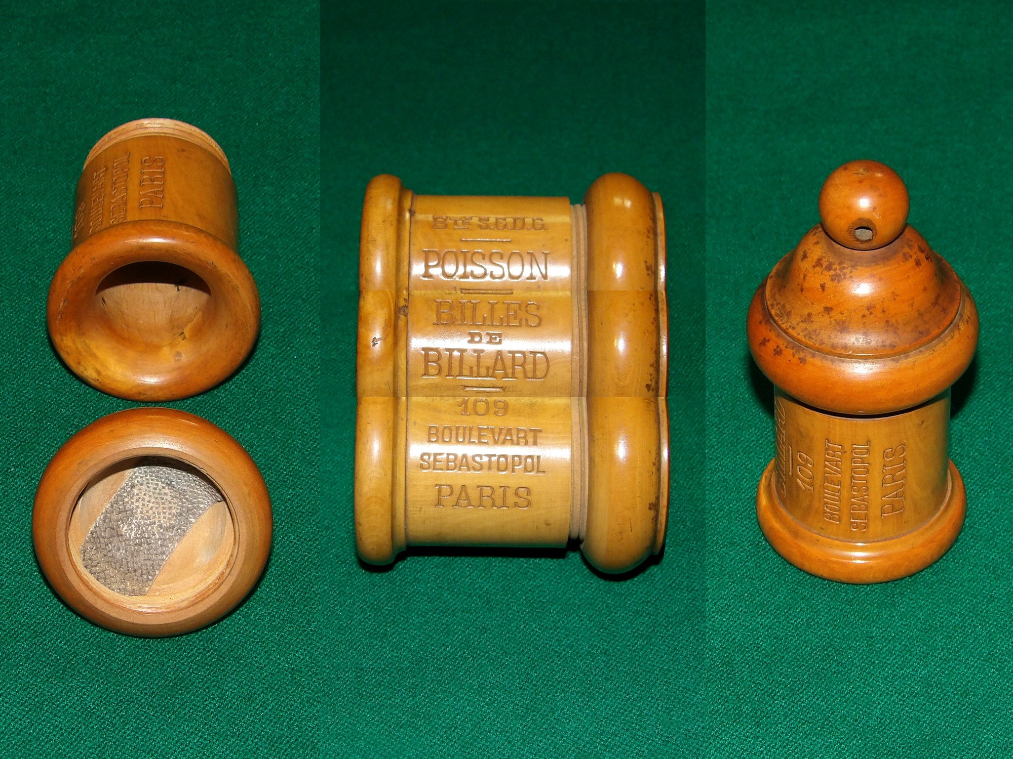 Inscriptions : Breveté SGDG, POISSON, billes de billard, 109 boulevard (avec un T) Sébastopol, PARIS.